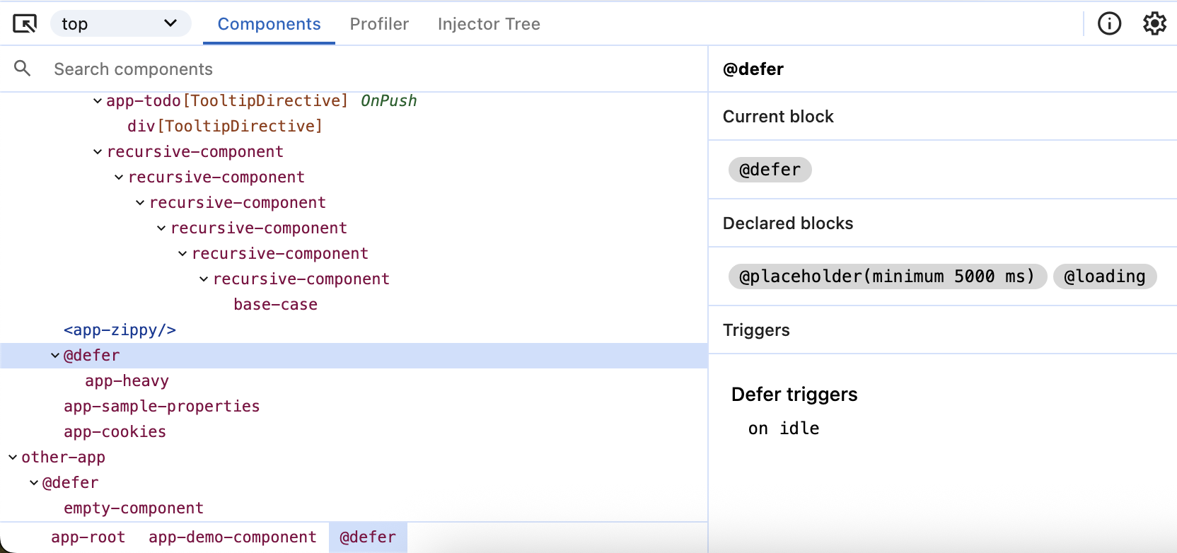 Alongside the directives, the directive tree also includes @defer blocks.