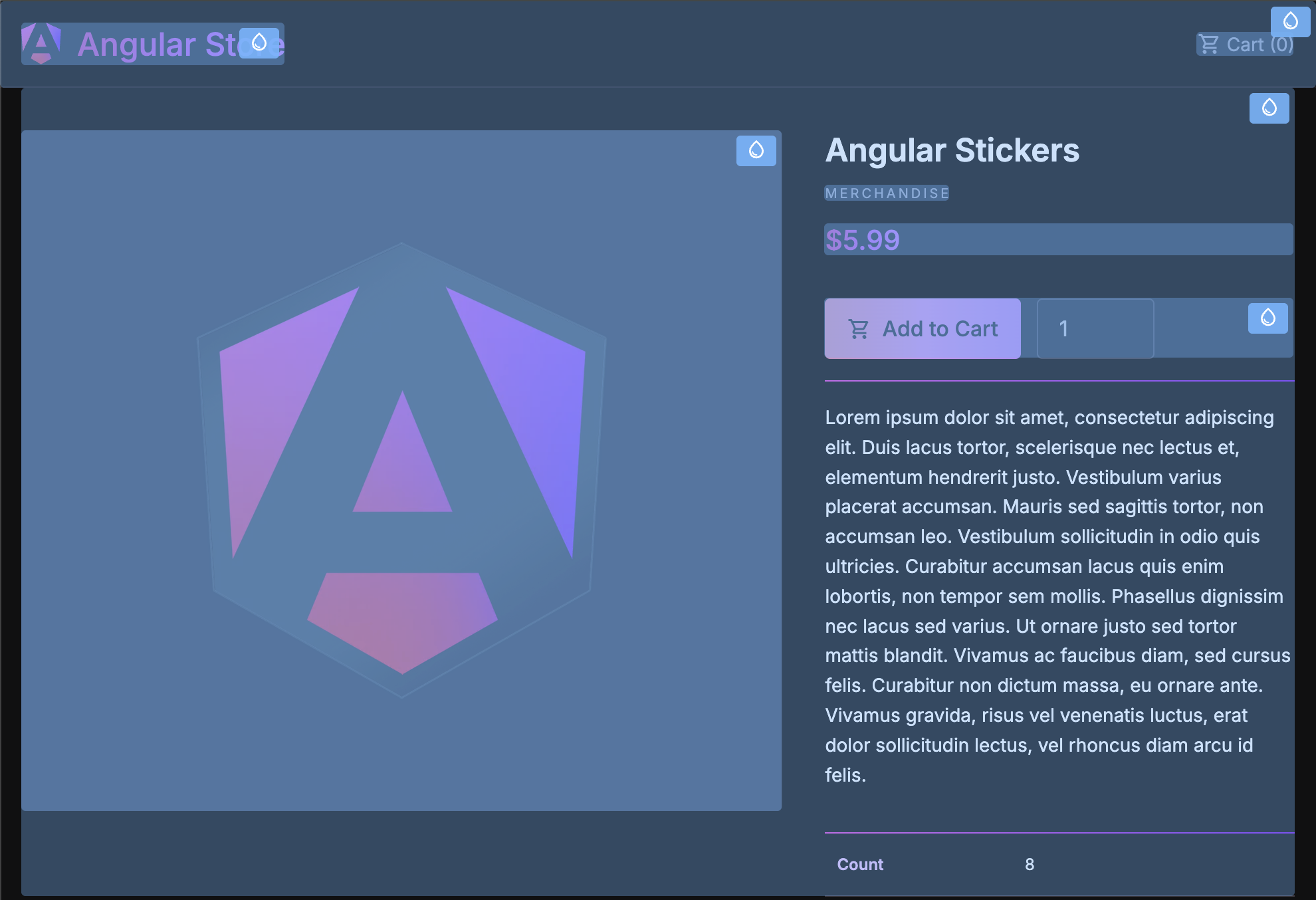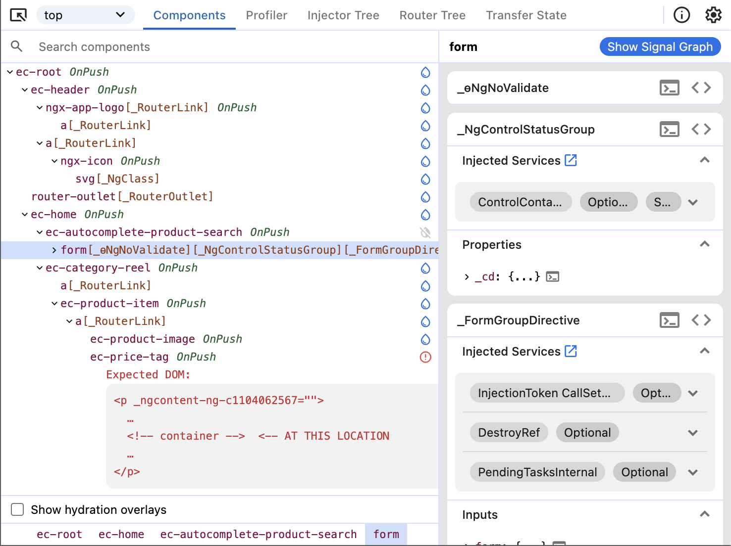 Here is an illustration of the hydration overlays on a Angular e-shop example app.